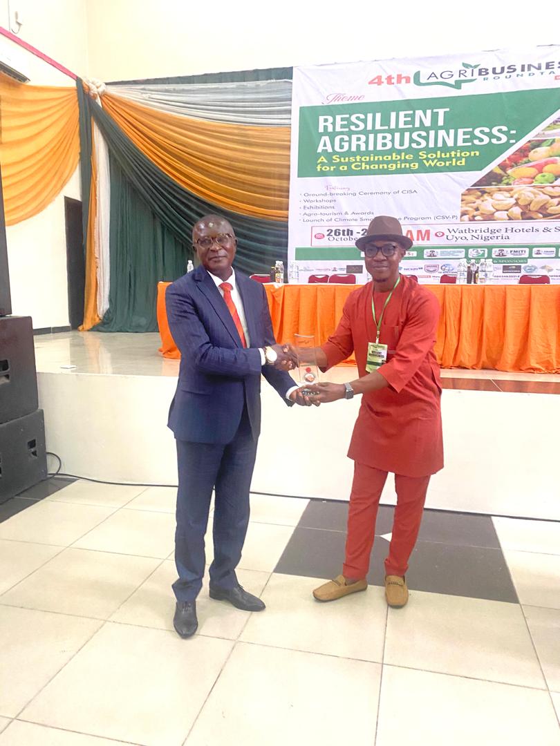 The award was presented during the 4th Agribusiness Roundtable International Conference (Uyo2025), holding at Watbridge Hotels and Suites, Uyo, Akwa Ibom State, with the theme “Resilient Agribusiness: A Sustainable Solution for a Changing World.”